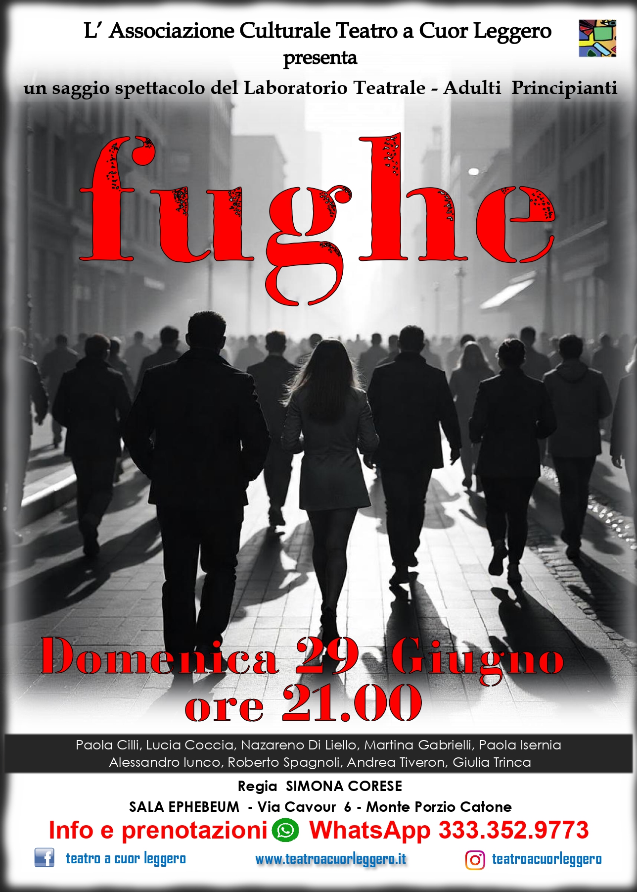 Si comunica che in data 29 giugno 2025 alle ore 21.00 si terrà un saggio spettacolo del Laboratorio Teatrale- Adulti Principianti a cura dell’ Associazione Teatro a Cuor Leggero, presso la sala Ephebeum sita in Via Cavour n. 6.