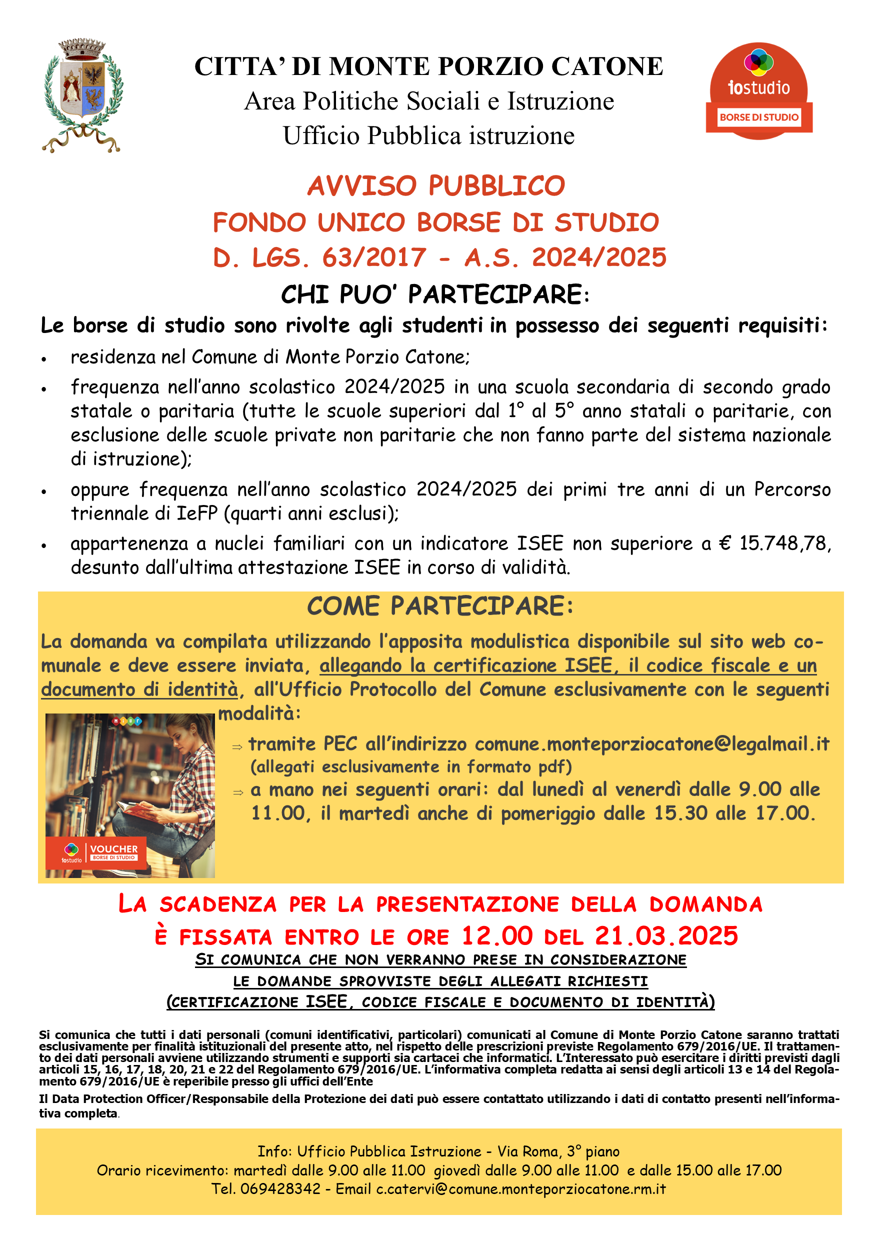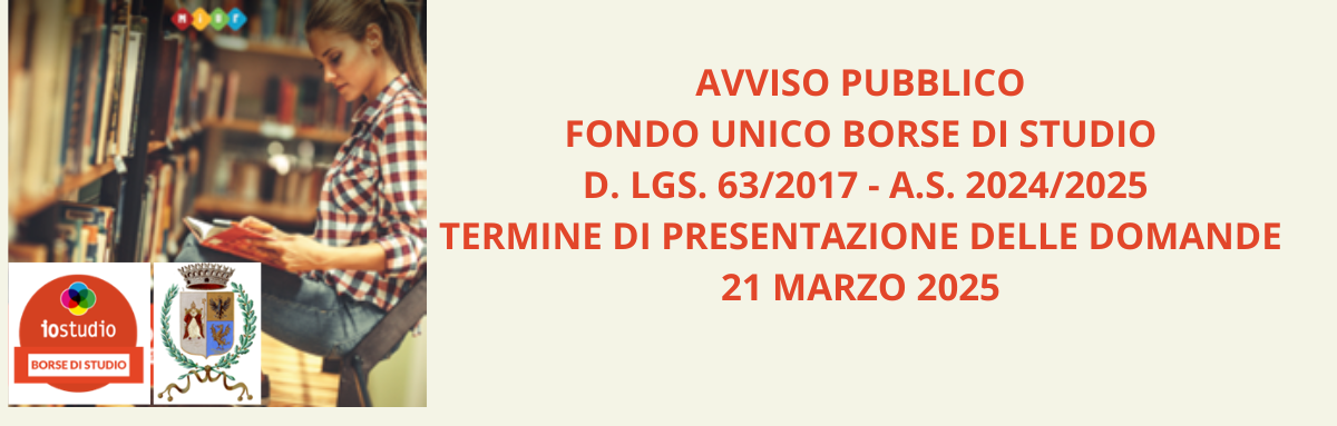 Avviso Pubblico FONDO UNICO BORSE DI STUDIO D. LGS. 63/2017 - A.S. 2024/2025