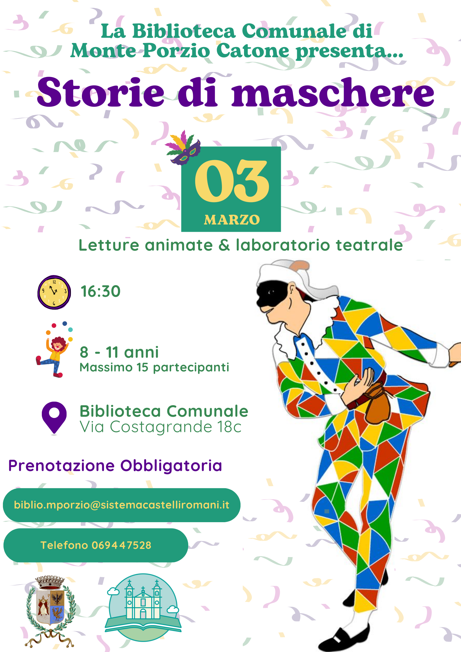 *3 Marzo: “Carnevale in biblioteca. Storie di maschere. Letture e laboratorio teatrale.” – ore 16.30 – tutti i dettagli a questo link
