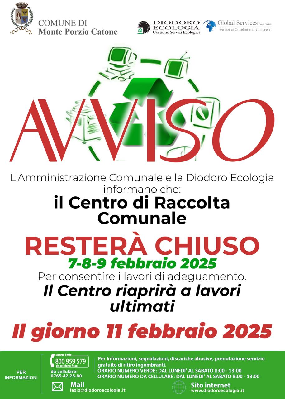 Descrizione Per consentire lavori di adeguamento, il Centro resterà chiuso dal 7 al 9 Febbraio. Riapertura il giorno 11.