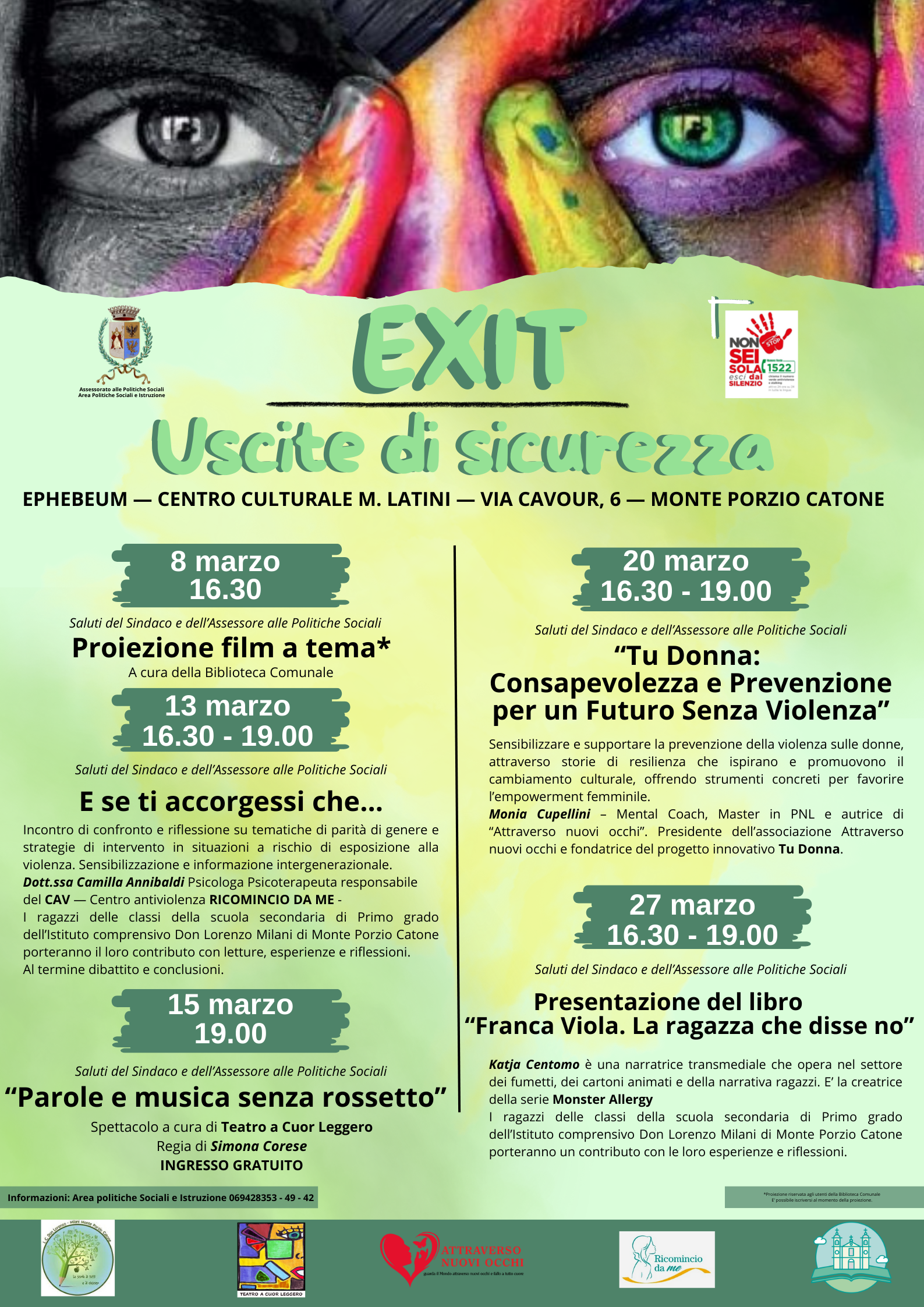 Per informazioni in merito ai singoli eventi contattare l’Area Politiche Sociali e Istruzione 069428349-53-42