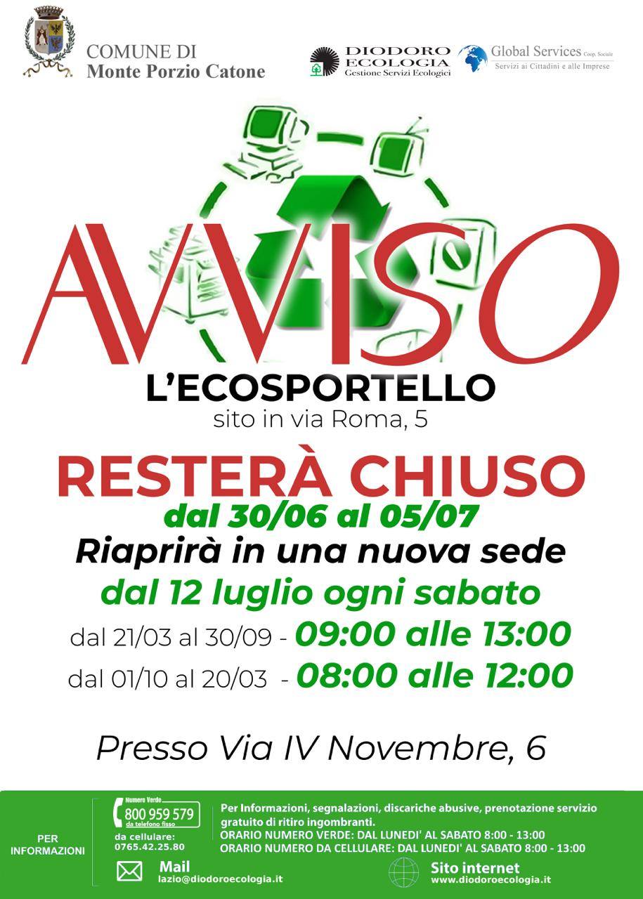 Dal 12 luglio l’ecosportello si sposterà in una nuova sede a Via IV Novembre 6.